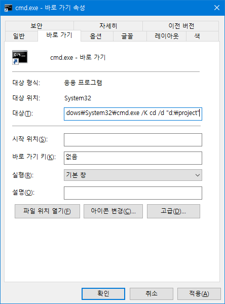 C:\Windows\System32\cmd.exe /K cd /d "d:\project"