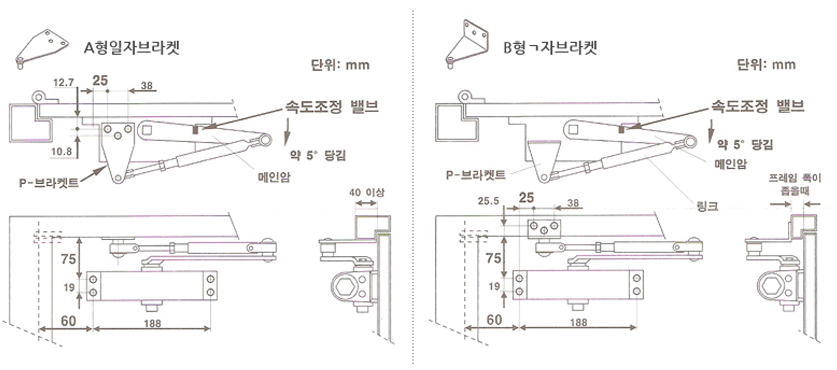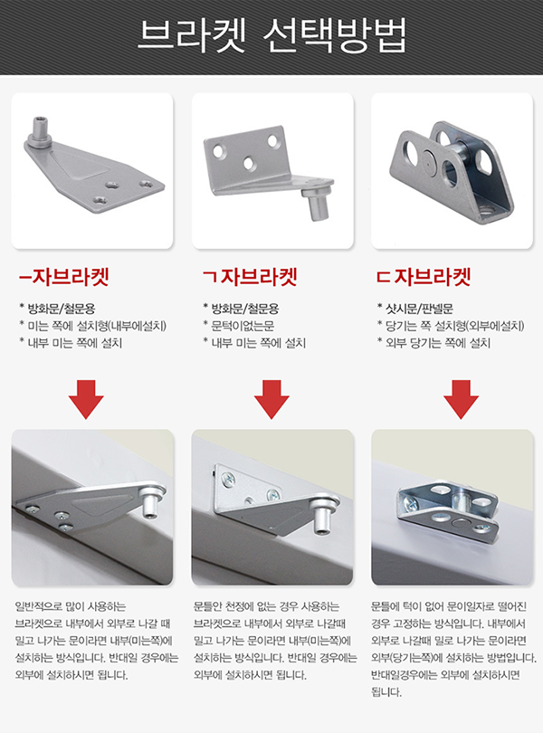 ㅡ 자 : 방화문/철문용, 내부(미는 쪽) 설치, 문턱이 있는 경우(일반적)