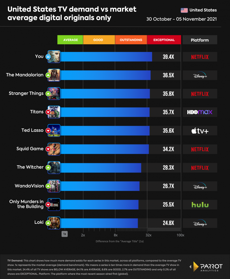 Parrot Analytics: Disney+ Second Only to Netflix in U.S. Originals Demand