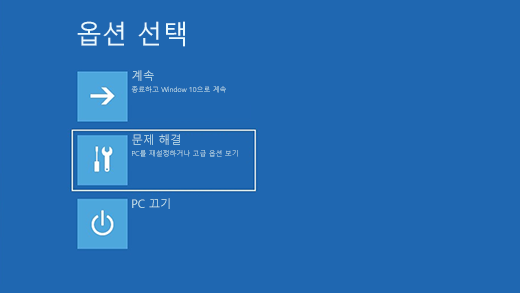 < 윈도우 복구 "옵션 선택" 화면 (안전모드로 들어가기 위한 첫단계) >