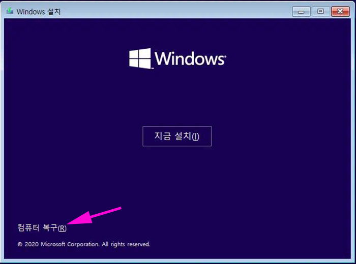 * 방법 4 : 윈도우 설치 USB 이용 부팅
