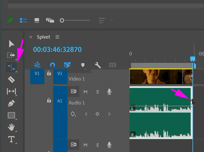 타임라인 도구중 'Rate Stretch Tool' 기능 선택(단축키 R)
