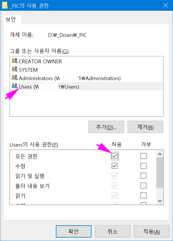 폴더 권한 설정