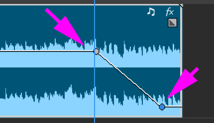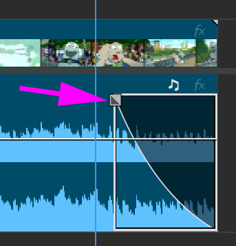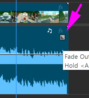 Selection Tool (V) 사용, 클립 끝에 있는 Interactive fade handles 을 클릭해서 드래그