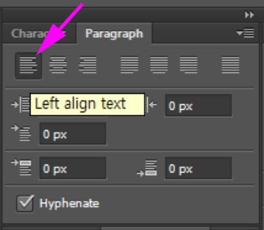 - Paragraph 탭에서 왼쪽정렬(Left align text)