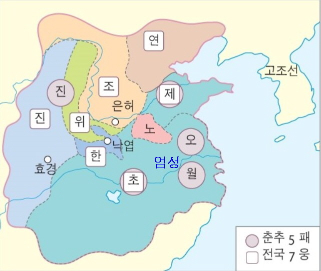 * 전국 시대(BC 403~221) - 전국 칠웅: 연(燕), 위(魏), 제(齊), 조(趙), 진(秦), 초(楚) · 한(韓)